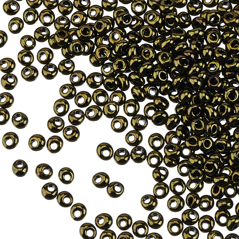 Японский бисер фирмы TOHO — магатамы (TOHO Magatama), размер 2,3 х 3,4 мм, отверстие 1 мм. Цвет #422 (золотой глянец, оливковый). Цена указана за 10 гр.