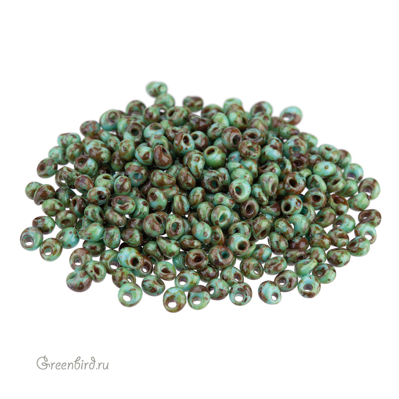 Японский бисер фирмы TOHO — магатамы (TOHO Magatama), размер 2,3 х 3,4 мм, отверстие 1 мм. Цвет #Y307 (Hybrid, бирюза/пикассо). Цена указана за 10 грамм (примерно 350 шт).
