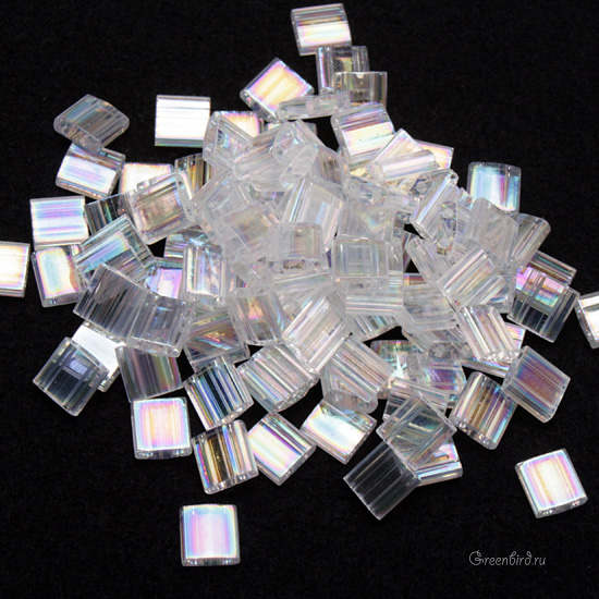 Японский бисер MIYUKI TILA, цвет #250 (прозрачный радужный хрусталь), размер 5 x 5 x 1,9 мм. Цена указана за 10 грамм (примерно 110 шт).