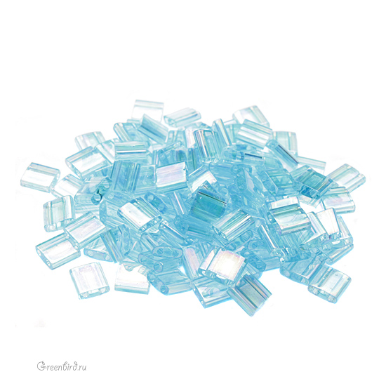 Японский бисер MIYUKI TILA, цвет #260 (радужный прозрачный, аквамарин), размер 5 x 5 x 1,9 мм. Цена указана за 10 грамм (примерно 110 шт).