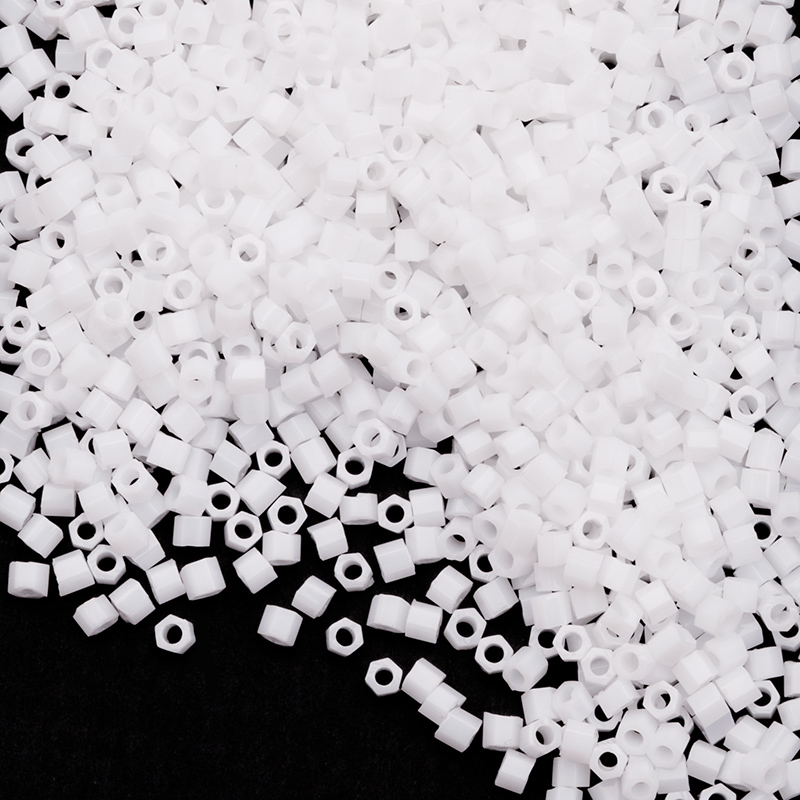 Японский шестиугольный бисер TOHO Hexagon, размер 15/0. Диаметр: 1,6 мм, отверстие: 0,8 мм. Цвет: White #41 (непрозрачный, белый). Производство: Япония. Цена указана за 1 упаковку (примерно 4,5 гр).