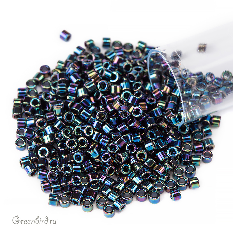 Японский цилиндрический бисер MIYUKI Delica, размер 10/0. Цвет: #0005 (металлизированный, сине-зеленый ирис). Цена указана за 1 упаковку (примерно 4,5 г).