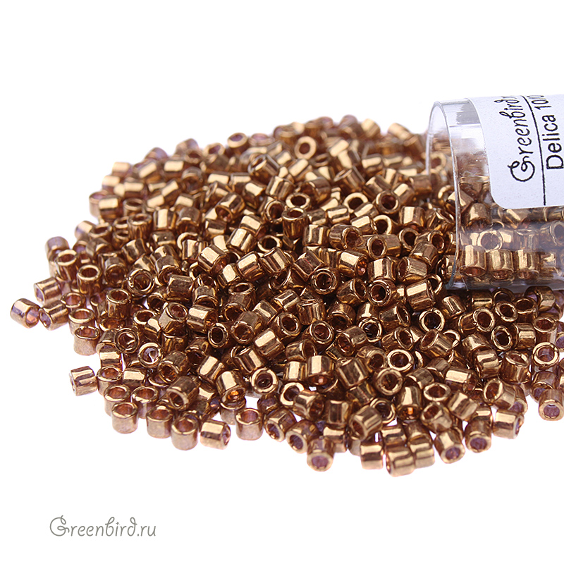 Японский цилиндрический бисер MIYUKI Delica, размер 10/0. Цвет: #0022L (металлизированный, светлая бронза). Цена указана за 1 упаковку (примерно 4,5 гр).