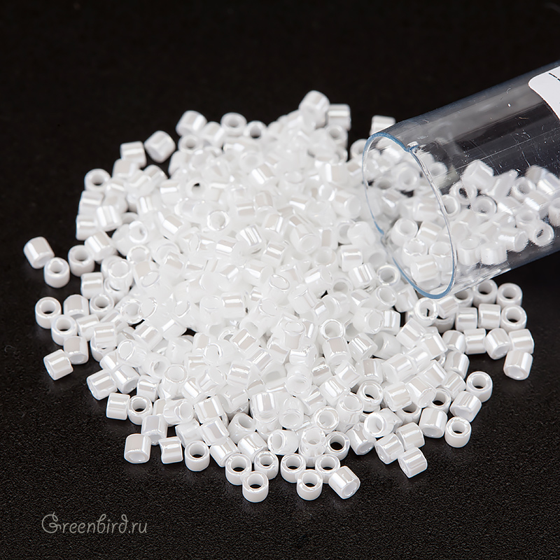 Японский цилиндрический бисер MIYUKI Delica, размер 10/0. Цвет: #0201 (непрозрачный глянцевый, жемчуг). Цена указана за 1 упаковку (примерно 4,5 г).