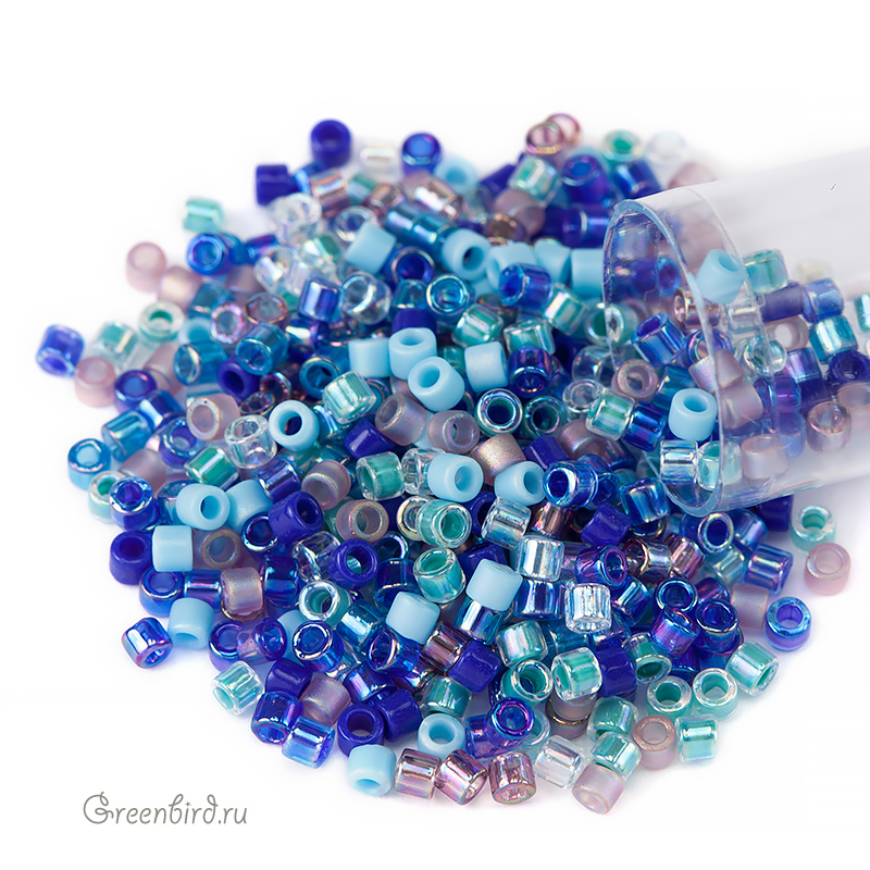 Японский цилиндрический бисер MIYUKI Delica, размер 10/0. Цвет: #MIX11 (микс Carribean Blue, Карибское море). Цена указана за 1 упаковку (примерно 4,5 г).