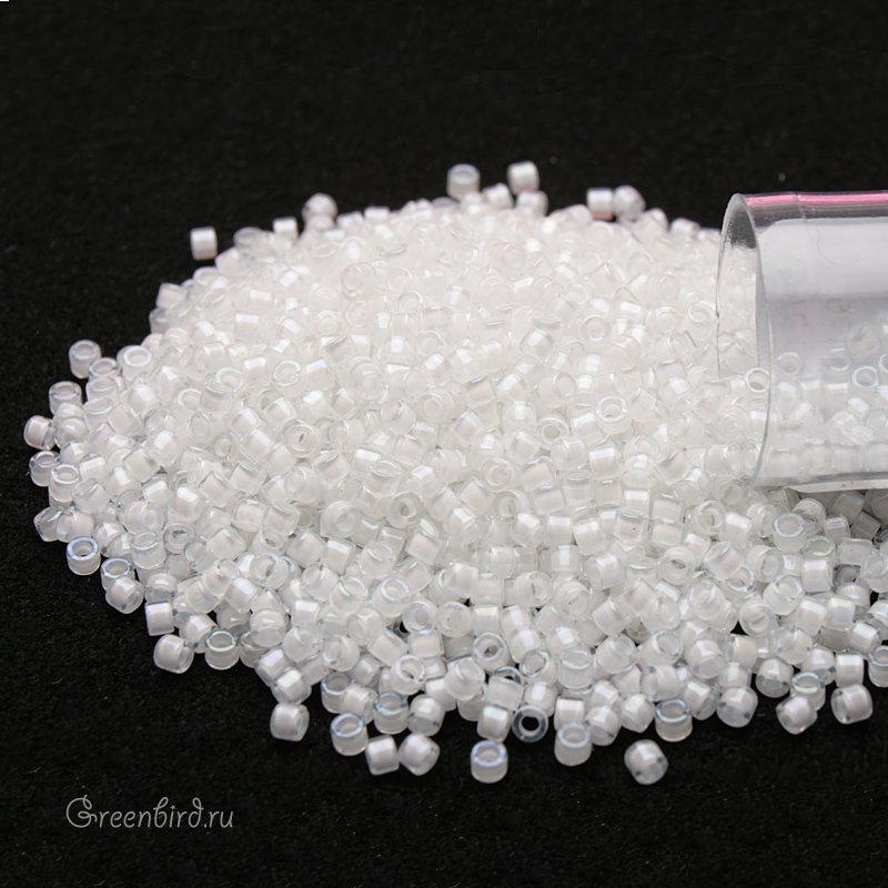 Японский цилиндрический бисер MIYUKI Delica, размер 11/0. Цвет: #0066 (окрашенный изнутри, белый AB). Цена указана за 1 упаковку (примерно 4,5 г).