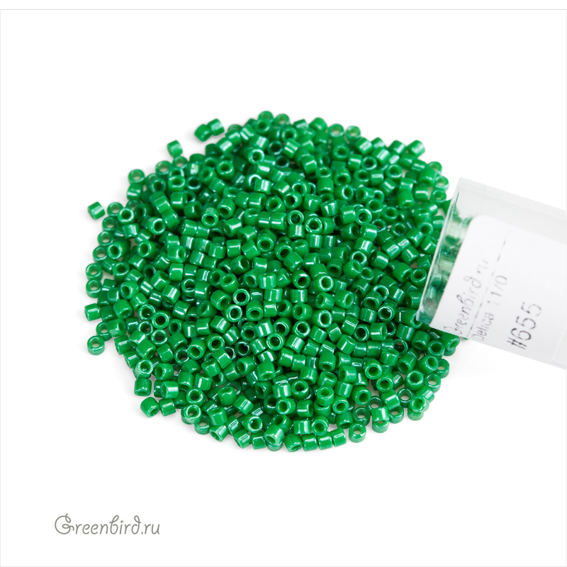 Японский цилиндрический бисер MIYUKI Delica, размер 11/0. Цвет: #0655 (непрозрачный, ярко-зеленый). Цена указана за 1 упаковку (примерно 4,5 г).