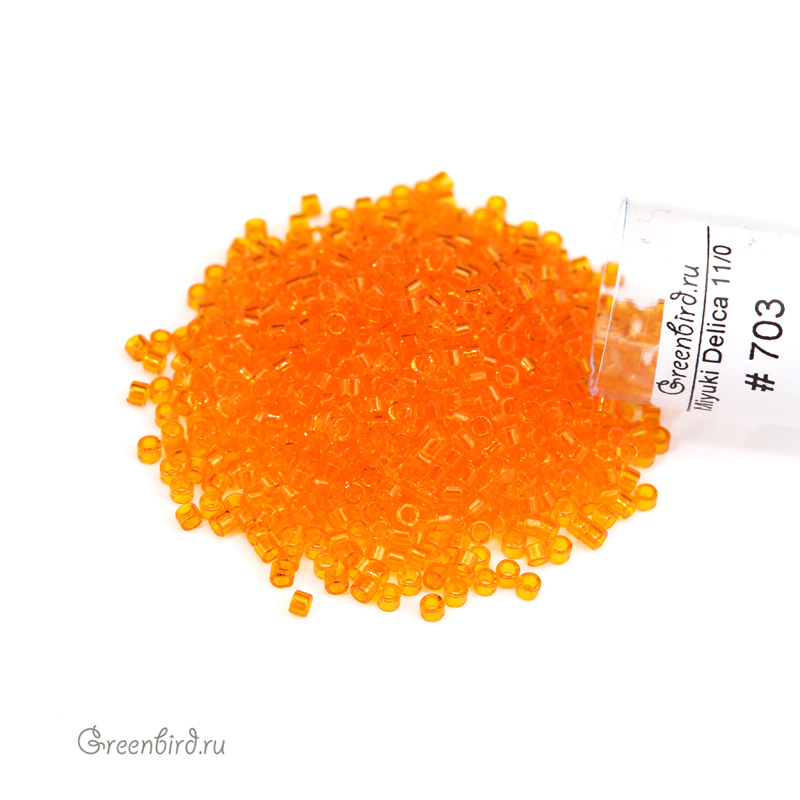 Японский цилиндрический бисер MIYUKI Delica, размер 11/0. Цвет: #0703 (прозрачный, мандарин). Цена указана за 1 упаковку (примерно 4,5 г).