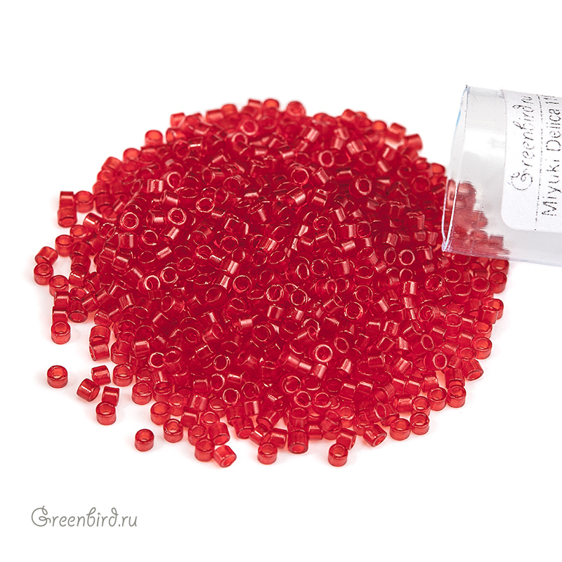 Японский цилиндрический бисер MIYUKI Delica, размер 11/0. Цвет: #0774 (прозрачный матовый окрашенный, красный). Цена указана за 1 упаковку (примерно 4,5 г).