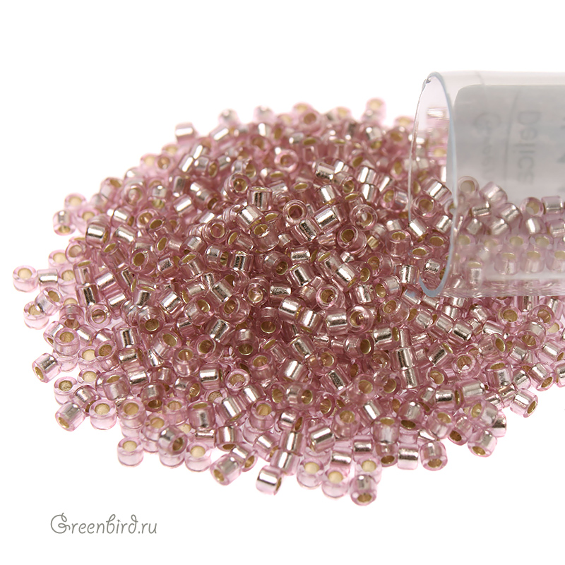 Японский цилиндрический бисер MIYUKI Delica, размер 11/0. Цвет: #1434 (внутреннее серебрение, светлая роза). Цена указана за 1 упаковку (примерно 4,5 гр).