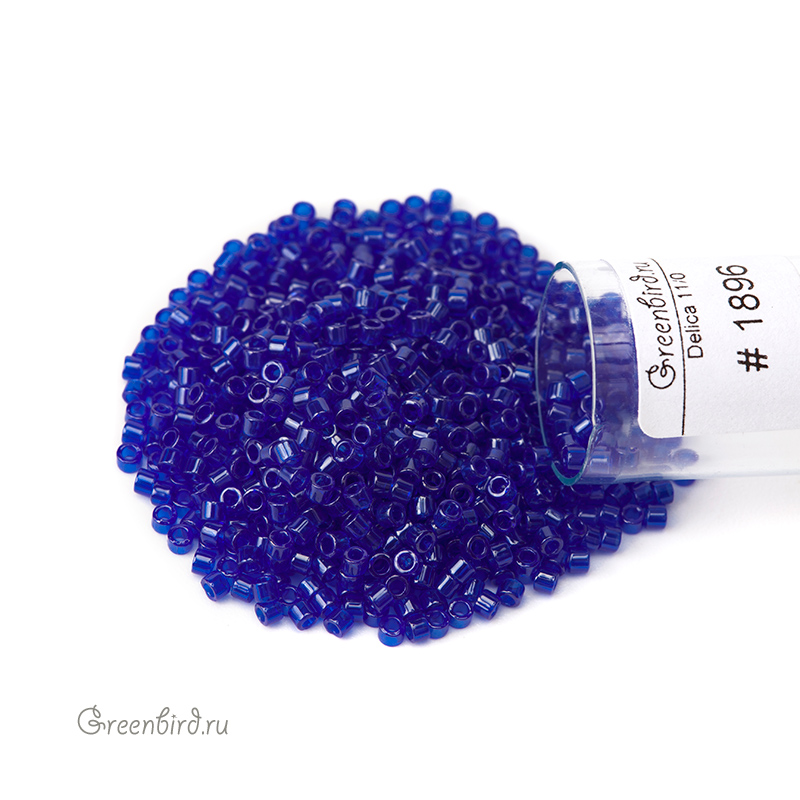 Японский цилиндрический бисер MIYUKI Delica, размер 11/0. Цвет: #1896 (прозрачный глянцевый, синий берилл). Цена указана за 1 упаковку (примерно 4,5 г).