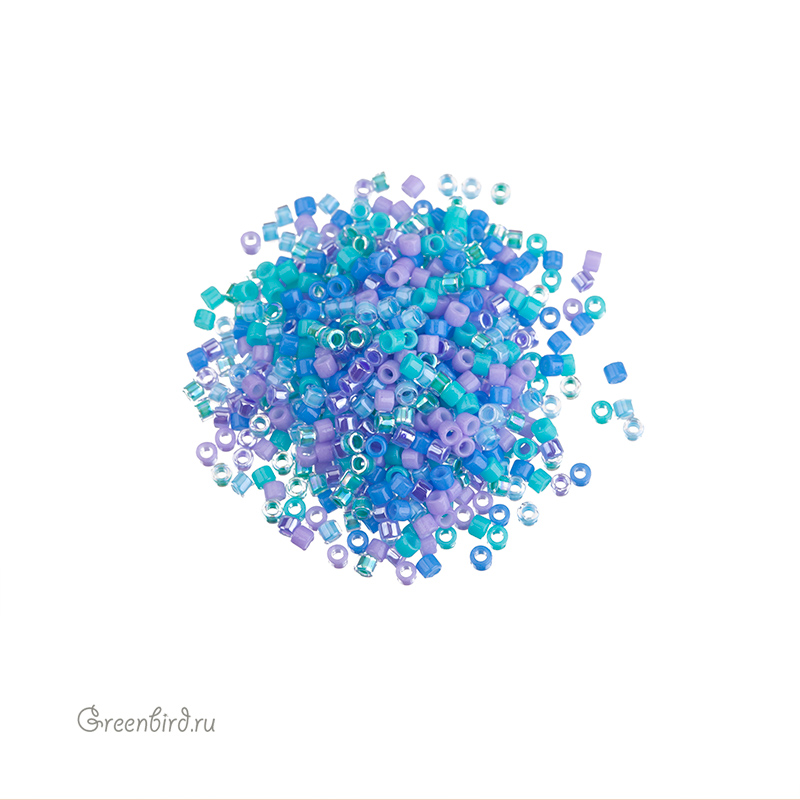Японский цилиндрический бисер MIYUKI Delica, размер 11/0. Микс 100. Цвета: голубой, зеленый, сиреневый. Цена указана за 1 упаковку (примерно 4,5 г).