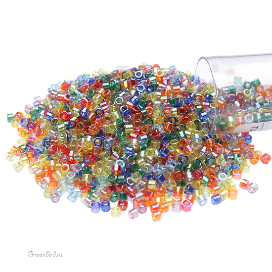 Японский цилиндрический бисер MIYUKI Delica, размер 11/0. Цвет: #MIX17 (микс Rainbow AB, радуга AB). Цена указана за 1 упаковку (примерно 4,5 г).