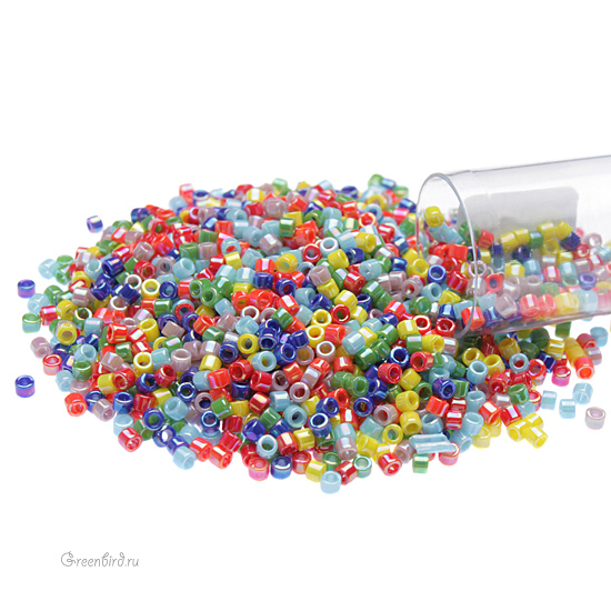 Японский цилиндрический бисер MIYUKI Delica, размер 11/0. Цвет: #MIX44 (микс Opaque Rainbow Ab, непрозрачный, радуга AB). Цена указана за 1 упаковку (примерно 4,5 г).