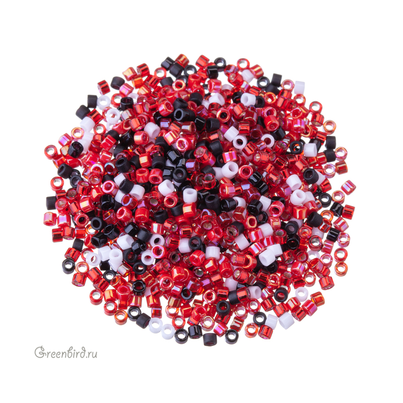 Японский цилиндрический бисер MIYUKI Delica, размер 11/0. Цвет: #MIX081 (микс Ladybug, божья коровка). Цена указана за 1 упаковку (примерно 4,5 г).