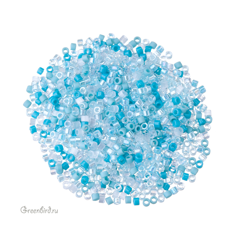 Японский цилиндрический бисер MIYUKI Delica, размер 11/0. Цвет: #MIX097 (микс Seafoam, морская пена). Цена указана за 1 упаковку (примерно 4,5 г).