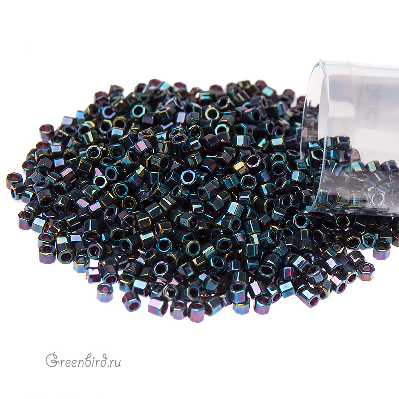 Японский бисер Delica Hexagon Cut (шестиугольный), размер 11/0. Цвет: #0002 (металлизированный, синий ирис). Цена указана за 1 упаковку (примерно 4,5 г).