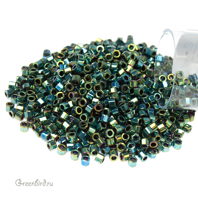 Японский бисер Delica Hexagon Cut (шестиугольный), размер 11/0. Цвет: #0027 (металлизированный, сине-зеленый ирис). Цена указана за 1 упаковку (примерно 4,5 г).