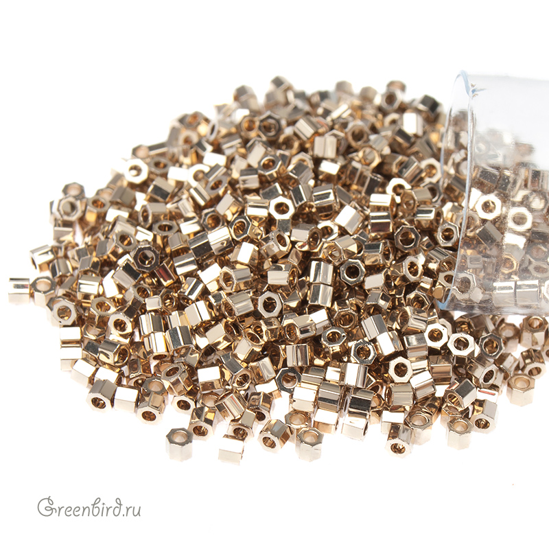 Японский бисер Delica Hexagon Cut (шестиугольный), размер 11/0. Цвет: #0034 (золото 24К снаружи). Цена указана за 1 упаковку (примерно 4,5 г).