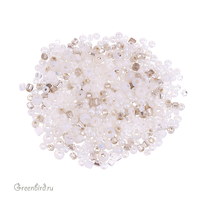 Венецианский винтажный бисер миксованный, смесь форм и размеров. Цвет #White Snow (прозрачный, оттенки белого и серебристого). Производство: Италия. Цена указана за 5 грамм.