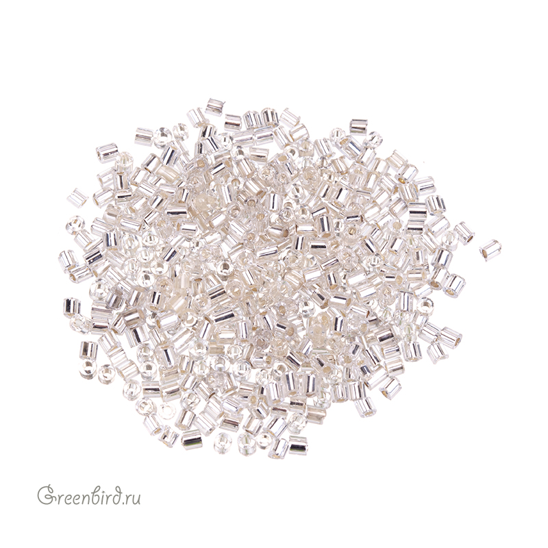 Винтажный стеклярус - Bugle Beads, размер 2 мм. Цвет #Clear 2 s/l (прозрачный, с внутренним серебрением). Производство: Италия. Цена указана за 5 грамм (примерно 450 штук).