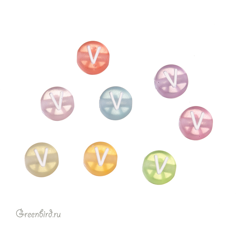 Бусины с буквами пластиковые. Цвет: в ассортименте; печать рисунка: белый. Размер: 6,7 х 7 мм, толщина: 4,1 мм, отверстие: 1,6 мм. Обратите внимание: это микс из разноцветных бусин. Вы получите бусину случайного цвета. Производство: Китай. Цена указана за 1 шт.