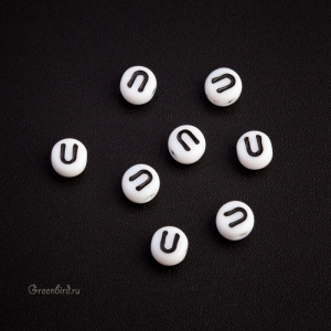 Бусины с буквами White Letter Beads (стекло). Цвет: белый, печать рисунка: черный. Размер: 5,8 х 6,3 мм, толщина: 4,2 мм, отверстие: 0,8-1 мм. Производство: Чехия. Цена указана за 1 шт.