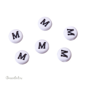 Бусины с буквами (кириллица) пластиковые. Цвет: белый; печать рисунка: черный. Размер: 6,8 х 7 мм, толщина: 3,5 мм, отверстие: 1,6 мм. Производство: Китай. Цена указана за 1 шт.