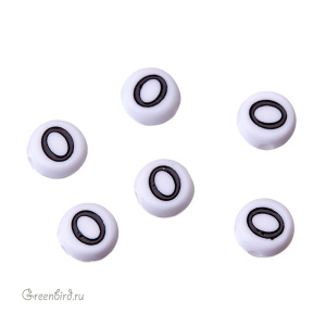 Бусины с буквами (кириллица) пластиковые. Цвет: белый; печать рисунка: черный. Размер: 6,8 х 7 мм, толщина: 3,5 мм, отверстие: 1,6 мм. Производство: Китай. Цена указана за 1 шт.