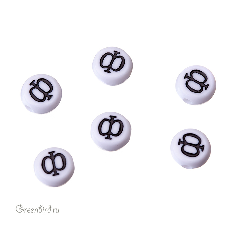 Бусины с буквами (кириллица) пластиковые. Цвет: белый; печать рисунка: черный. Размер: 6,8 х 7 мм, толщина: 3,5 мм, отверстие: 1,6 мм. Производство: Китай. Цена указана за 1 шт.