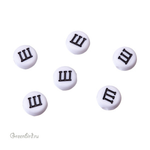 Бусины с буквами (кириллица) пластиковые. Цвет: белый; печать рисунка: черный. Размер: 6,8 х 7 мм, толщина: 3,5 мм, отверстие: 1,6 мм. Производство: Китай. Цена указана за 1 шт.