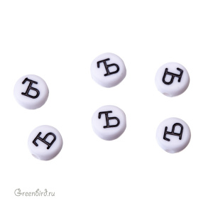 Бусины с буквами (кириллица) пластиковые. Цвет: белый; печать рисунка: черный. Размер: 6,8 х 7 мм, толщина: 3,5 мм, отверстие: 1,6 мм. Производство: Китай. Цена указана за 1 шт.