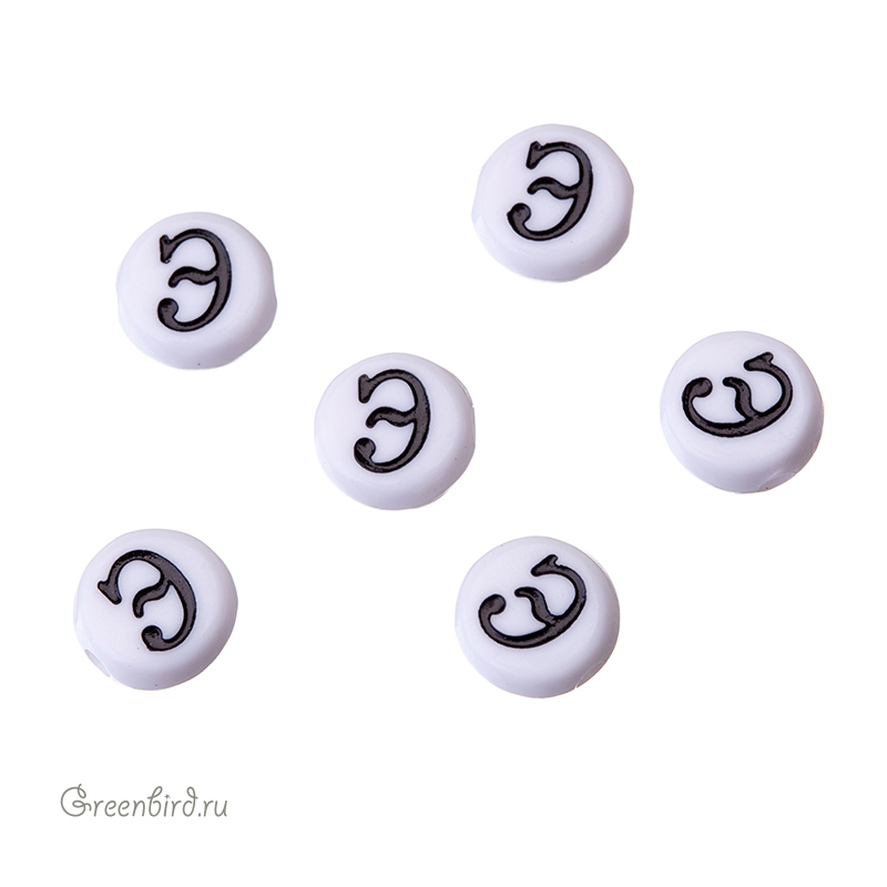 Бусины с буквами (кириллица) пластиковые. Цвет: белый; печать рисунка: черный. Размер: 6,8 х 7 мм, толщина: 3,5 мм, отверстие: 1,6 мм. Производство: Китай. Цена указана за 1 шт.