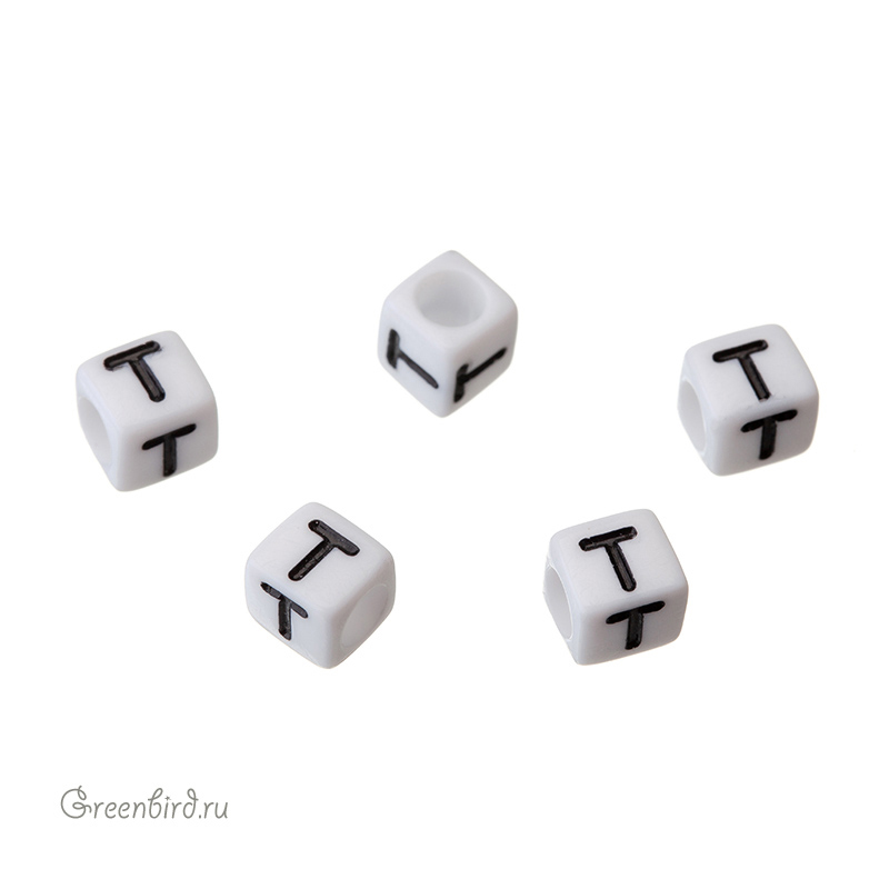 Пластиковые бусины-буквы (латиница) в виде кубика. Цвет: белый; печать рисунка: черный. Размер: 5,8 х 5,8 мм, отверстие: 3,6 мм. Производство: Китай. Цена указана за 1 шт.