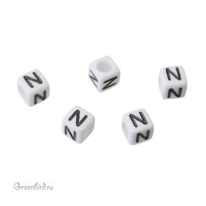 Пластиковые бусины-буквы (латиница) в виде кубика. Цвет: белый; печать рисунка: черный. Размер: 5,8 х 5,8 мм, отверстие: 3,6 мм. Производство: Китай. Цена указана за 1 шт.