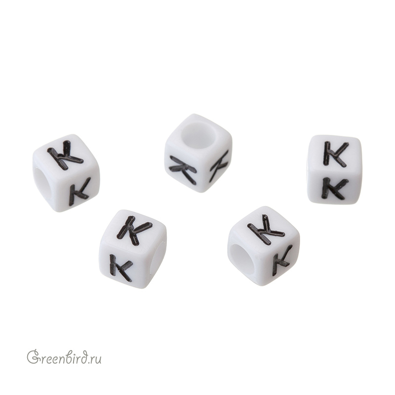 Пластиковые бусины-буквы (латиница) в виде кубика. Цвет: белый; печать рисунка: черный. Размер: 5,8 х 5,8 мм, отверстие: 3,6 мм. Производство: Китай. Цена указана за 1 шт.