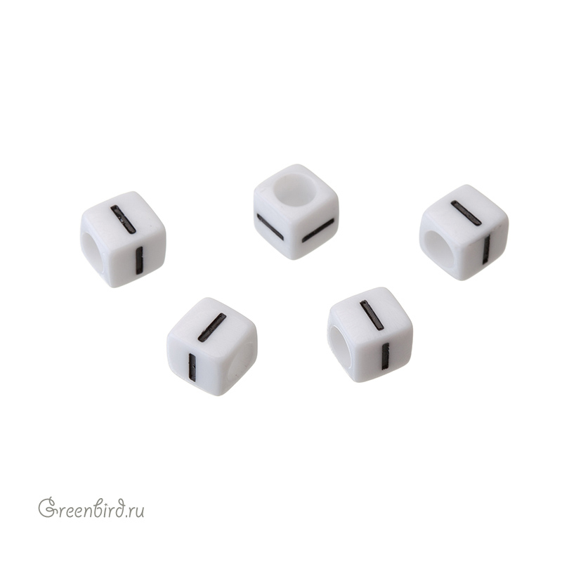 Пластиковые бусины-буквы (латиница) в виде кубика. Цвет: белый; печать рисунка: черный. Размер: 5,8 х 5,8 мм, отверстие: 3,6 мм. Производство: Китай. Цена указана за 1 шт.
