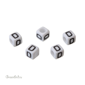 Пластиковые бусины-буквы (латиница) в виде кубика. Цвет: белый; печать рисунка: черный. Размер: 5,8 х 5,8 мм, отверстие: 3,6 мм. Производство: Китай. Цена указана за 1 шт.