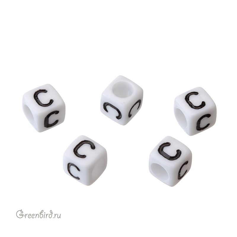 Пластиковые бусины-буквы (латиница) в виде кубика. Цвет: белый; печать рисунка: черный. Размер: 5,8 х 5,8 мм, отверстие: 3,6 мм. Производство: Китай. Цена указана за 1 шт.