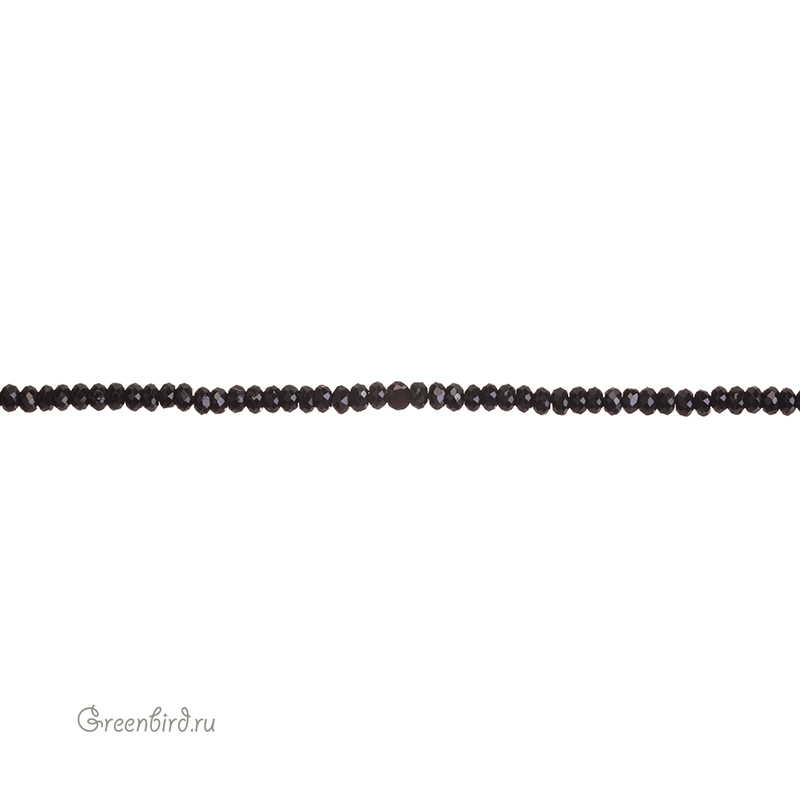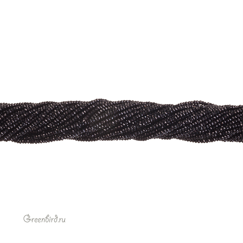 Бусины - рондели граненые Шпинель. Материал: синтетический камень. Цвет: черный. Размер: 2 х 1,3 мм, отверстие: 0,5 мм. Цена указана за нить 39 см.