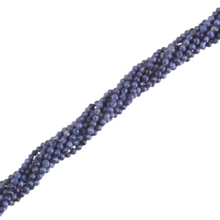 Бусины Дюмортьерит ювелирной огранки. Материал: камень. Цвет: синий (непрозрачный). Размер: 2 х 1,9 мм, диаметр отверстия: 0,5 мм. Производство: Китай. Цена указана за нить 37-38 см (примерно 204 штуки).