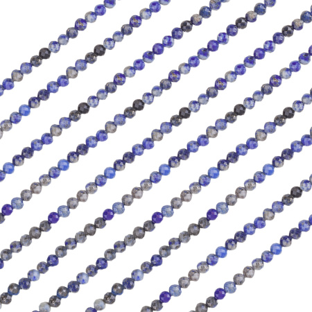 Бусины Лазурит ювелирной огранки. Материал: натуральный камень. Цвет: микс серого и синего. Размер: 3 мм, диаметр отверстия: 0,5 мм. Производство: Китай. Цена указана за нить 37-38 см (примерно 140 штук).