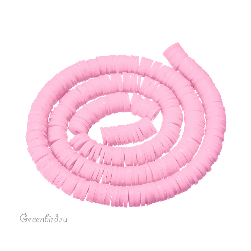 Легкие и гибкие цветные бусины в форме дисков. Материал: резина (каучук). Цвет: светло-розовый. Диаметр: 5,6-6,05 мм, толщина: 0,8-1,1 мм, отверстие примерно 1,8 мм. Размеры могут незначительно отличаться. Производство: Китай. Цена указана за нить 40 см (примерно 350 штук).
