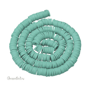 Легкие и гибкие цветные бусины в форме дисков. Материал: резина (каучук). Цвет: бирюзовый. Диаметр: 5,6-6,05 мм, толщина: 0,8-1,1 мм, отверстие примерно 1,8 мм. Размеры могут незначительно отличаться. Производство: Китай. Цена указана за нить 40 см (примерно 350 штук).