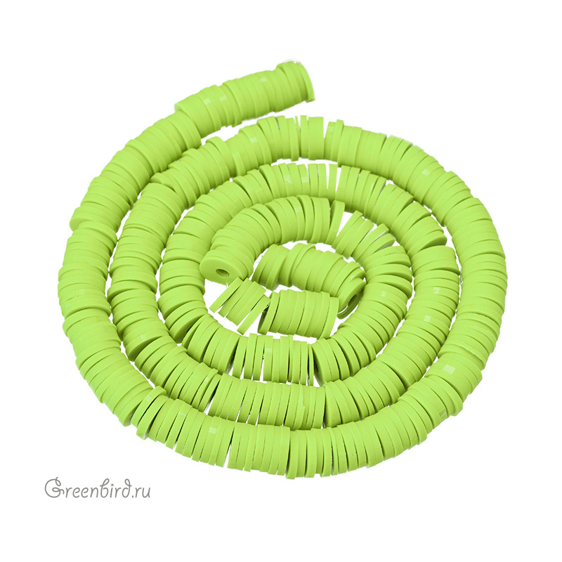 Легкие и гибкие цветные бусины в форме дисков. Материал: резина (каучук). Цвет: яркий, неоновый зеленый. Диаметр: 5,6-6,05 мм, толщина: 0,8-1,1 мм, отверстие примерно 1,8 мм. Размеры могут незначительно отличаться. Производство: Китай. Цена указана за нить 40 см (примерно 350 штук).