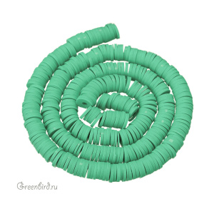 Легкие и гибкие цветные бусины в форме дисков. Материал: резина (каучук). Цвет: зеленый. Диаметр: 5,6-6,05 мм, толщина: 0,8-1,1 мм, отверстие примерно 1,8 мм. Размеры могут незначительно отличаться. Производство: Китай. Цена указана за нить 40 см (примерно 350 штук).