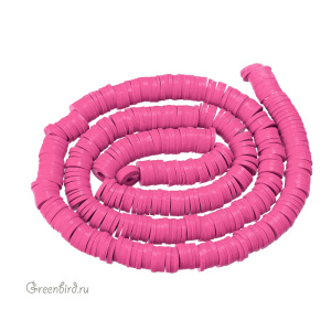 Легкие и гибкие цветные бусины в форме дисков. Материал: резина (каучук). Цвет: малиновый. Диаметр: 5,6-6,05 мм, толщина: 0,8-1,1 мм, отверстие примерно 1,8 мм. Размеры могут незначительно отличаться. Производство: Китай. Цена указана за нить 40 см (примерно 350 штук).