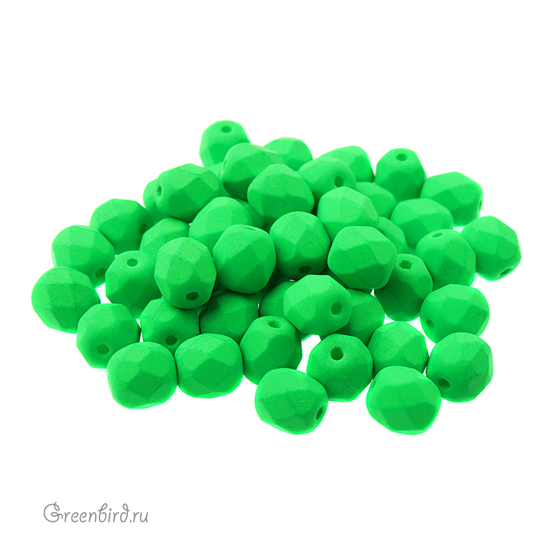 Граненые бусины (стекло). Цвет: #25124AL (непрозрачный, салатовый неон). Размер: 6 мм, отверстие: 1 мм. Производство: Чехия. Цена указана за 13 грамм (примерно 50 штук).