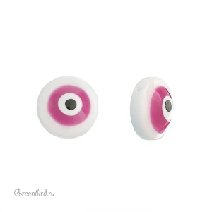 Бусина в виде глаза с цветной серединкой. Материал: пластик. Цвет: сиреневый. Размер: 9 мм, толщина: 6,3 мм, отверстие: 1 мм. Производство: Китай. Цена указана за 1 шт.
