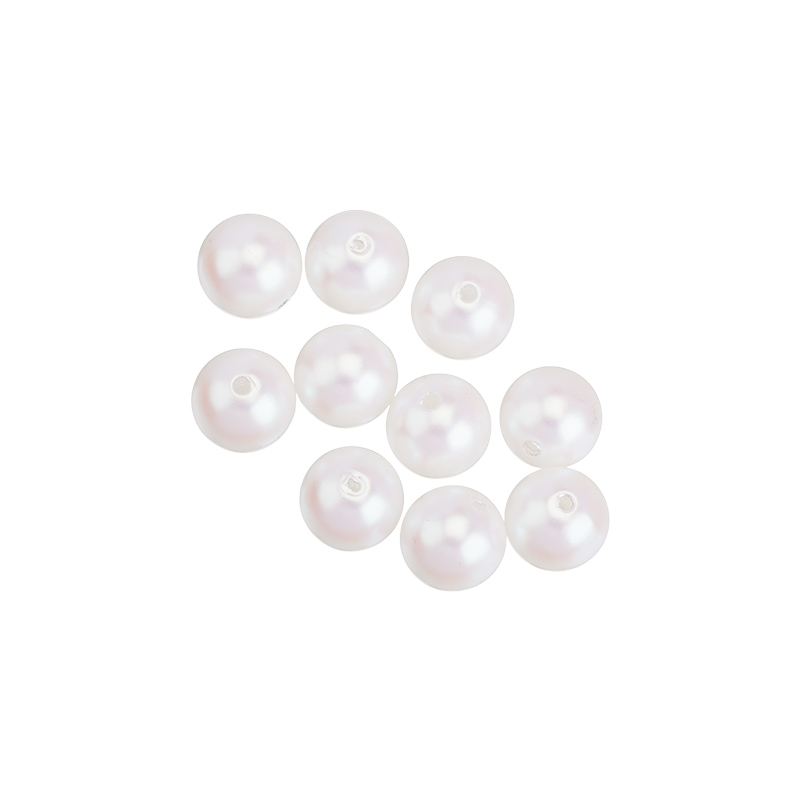 Бусины для рукоделия - жемчуг искусственный, круглой формы. Материал: пластик. Цвет: белый с эффектом Iridescent, легким розоватым отливом. Размер: примерно 11,6 x 12 мм, диаметр отверстия: 1,9 мм. Производство: Китай. Цена указана за 10 штук.